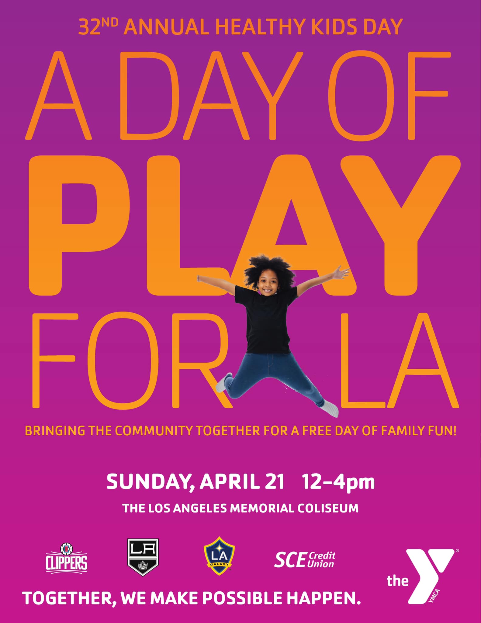 Mark your calendars! ποΈ Join us for our annual Healthy Kids Day on Sunday, April 21st, from 12-4pm at the iconic Los Angeles Memorial Coliseum! ποΈ Itβs going to be a day of PLAY for LA, bringing our amazing community together for a FREE day of family fun! π