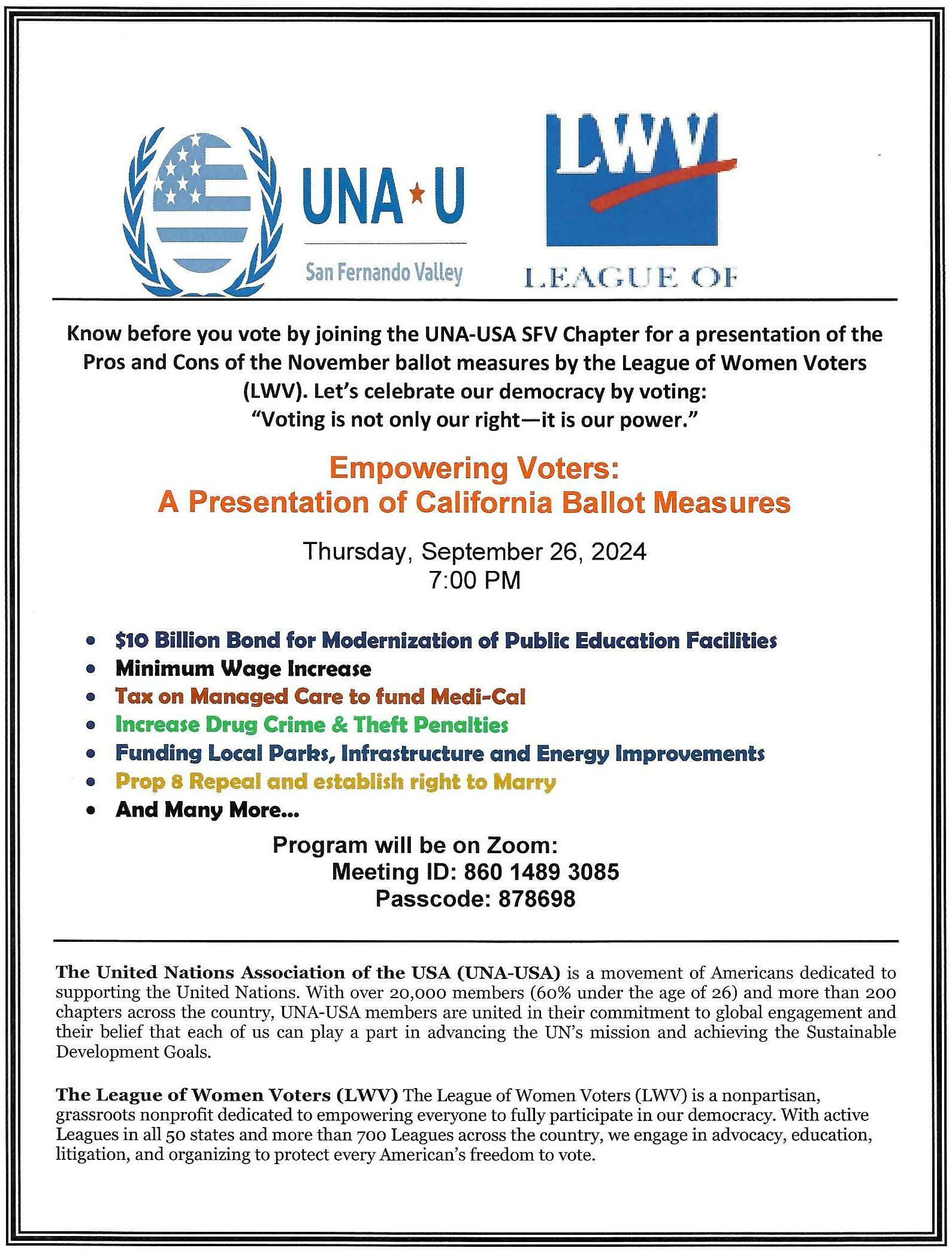 LWV Pros & Cons – Public Events