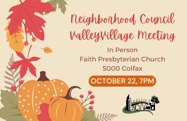 Join us for the next NCVV Meeting on Wednesday, October 22, 7pm. We will meet In Person at the Faith Presbyterian Church Social Hall, 5000 Colfax Ave.
