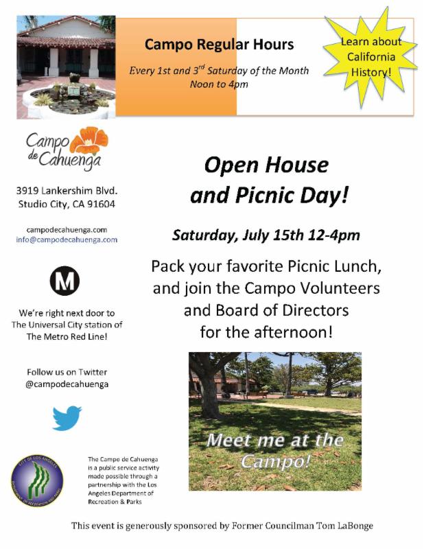 Pack your favorite picnic lunch and join the community at the historic Campo de Cahuenga for an afternoon of fun. The event is free for the whole family.