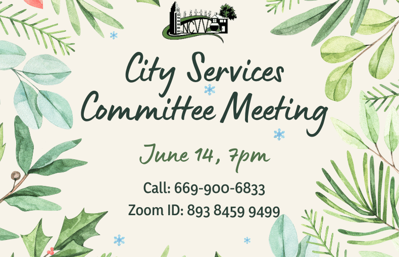 Join us for our City Services Committee Meeting on Tuesday, June 14, 7pm.