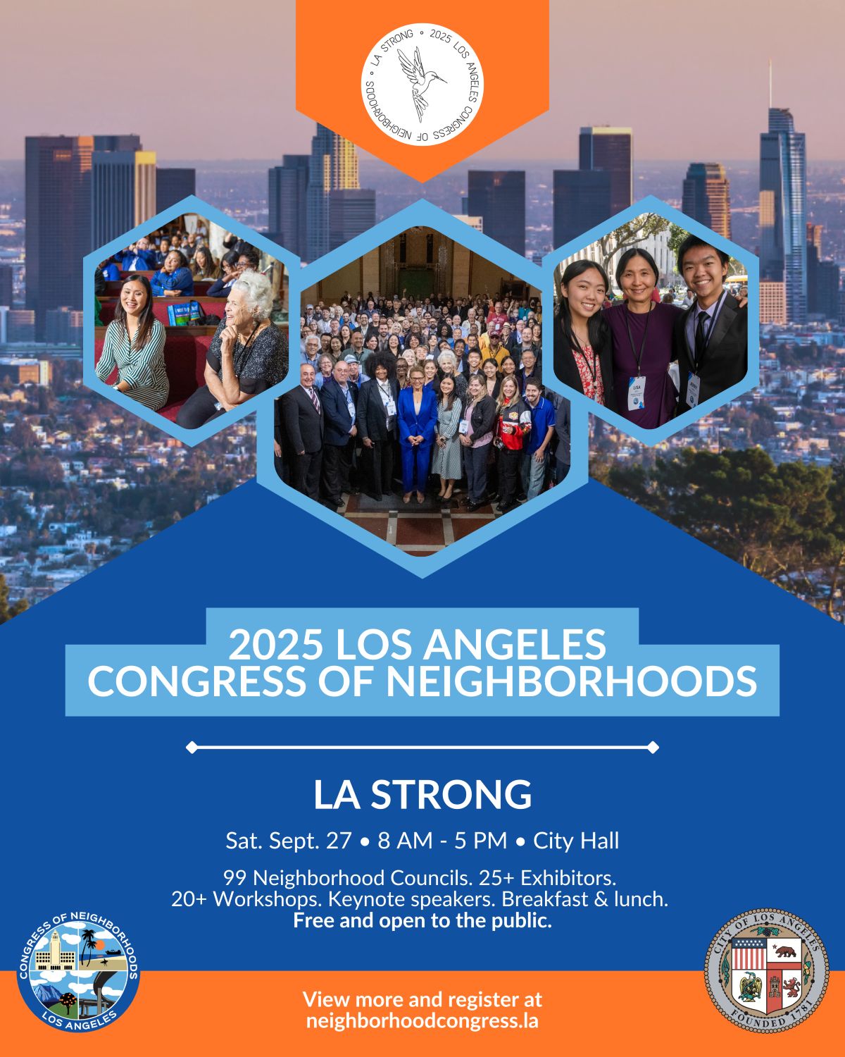 Congress of NeighborhoodsThe event is free and open to the public. Topics and speakers are especially geared towards board members and committee members of the City’s 99 Neighborhood Councils, but any stakeholders with a desire to improve their neighborhoods or learn more about the City and its operations are welcome to participate.