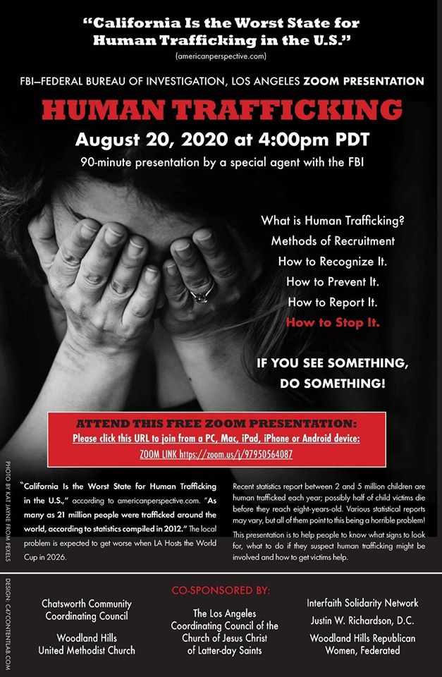 This FBI Presentation on Human Trafficking in California will be held August 20 at 4pm.