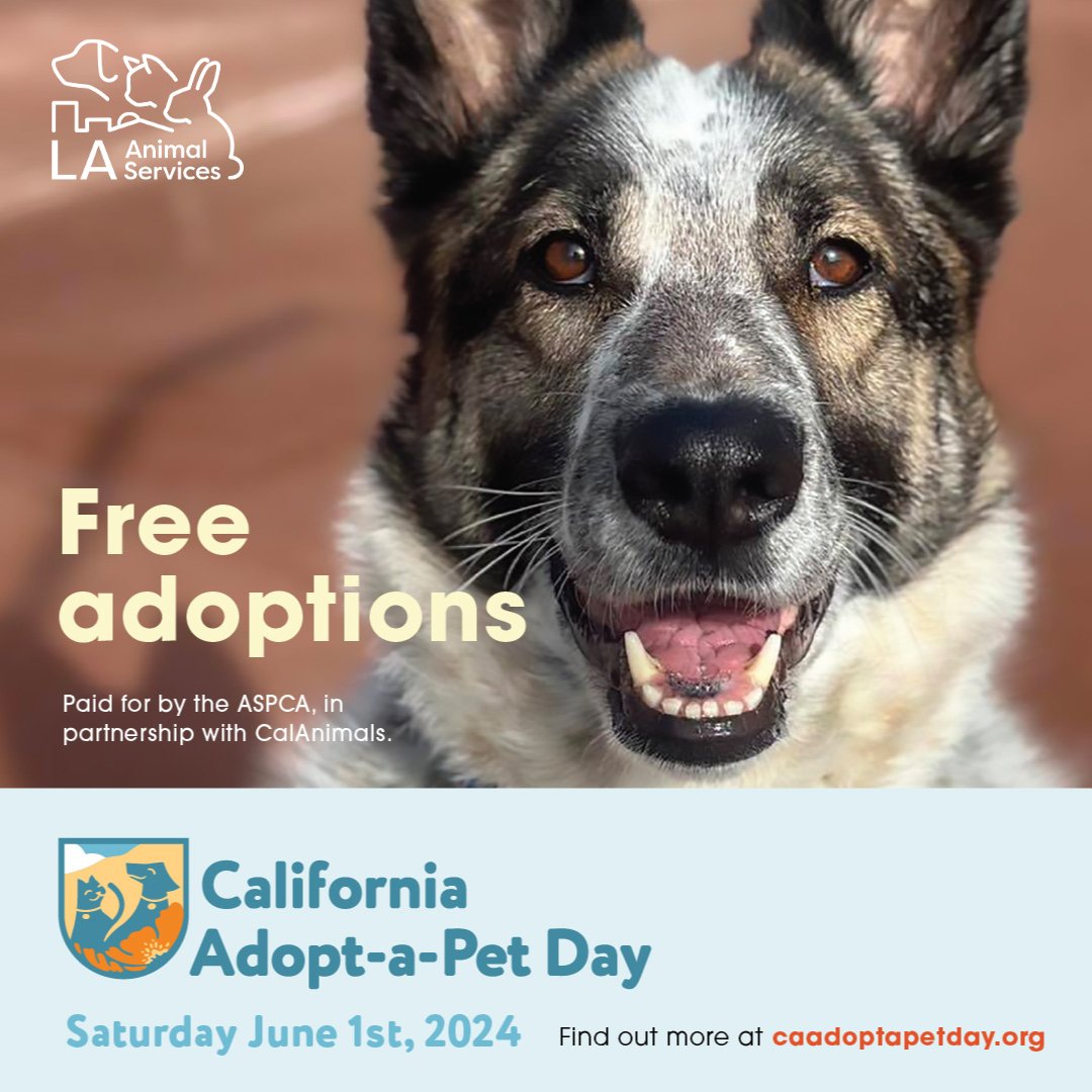 California Adopt-a-Pet Day is just around the corner on June 1st! Animal Services is hosting a special adoption event, where you can meet and fall in love with amazing pets who are eagerly awaiting loving homes. Thanks to the generous support of ASPCA in partnership with CalAnimals, all adoption fees are covered! A big shoutout to California Animal Welfare Association The San Francisco SPCA and the ASPCA for their incredible support in making this event possible!