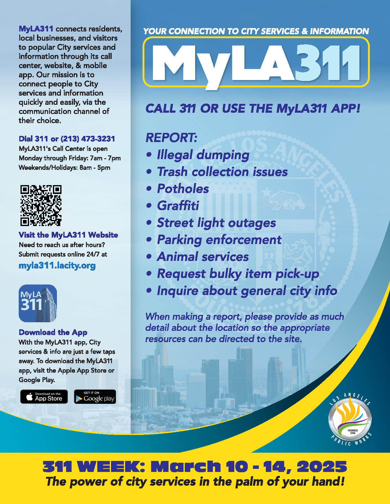 Use MyLA311 to report illegal dumping, potholes, graffiti, street lighting and more.