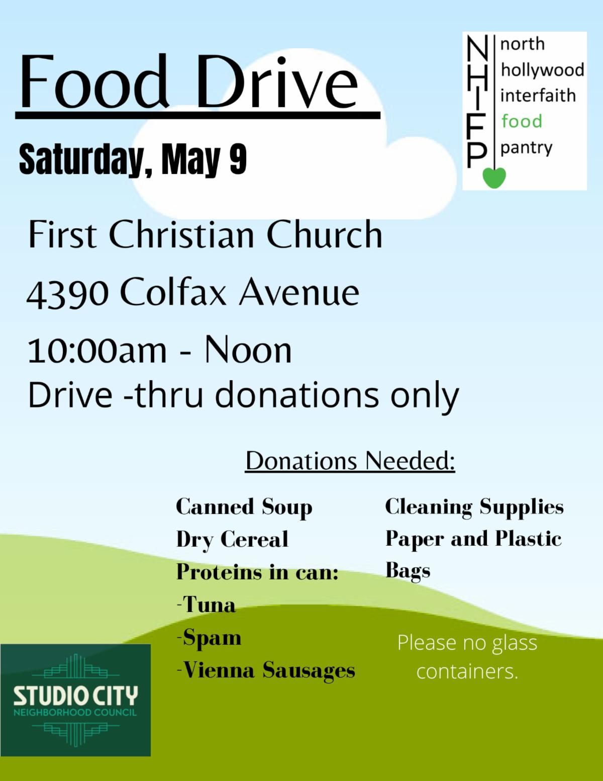 Help support the North Hollywood Interfaith Food Pantry (NHIFP) and donate items to help those most in need. Donations needed include canned soup, dry cereal, proteins in a can, cleaning supplies and paper or plastic bags. For more information, contact the NHIFP here: nhifp.org/contact.