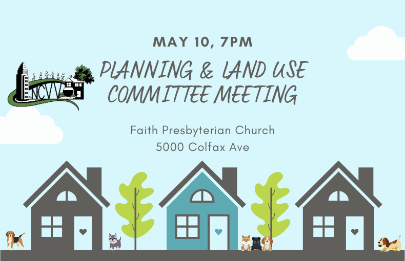 Join us for the NCVV Planning and Land Use Committee Meeting May 10, 7pm at Faith Presbyterian Church, 5000 Colfax Ave.