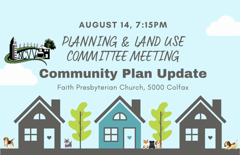 Join us for the next NCVV Planning and Land Use Committee Meeting August 14, 7:15pm at Faith Presbyterian Church Fellowship Hall, 5000 Colfax.