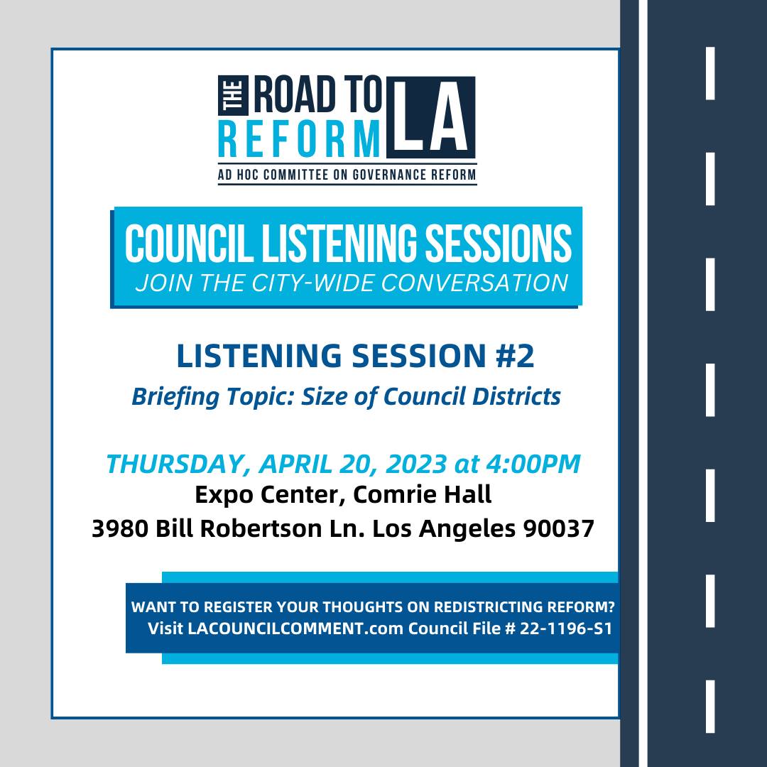 The Ad Hoc Committee on Governance Reform has begun its listening sessions on potential reforms to our city’s redistricting process. This is a historic effort which is being led by the Council President and the more public participation the better, as reforms recommended by the committee will need to go to the full City Council and the voters for adoption, as many reforms would require changes to the City Charter.