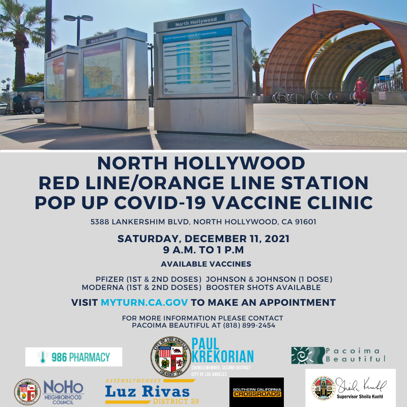 Free pop-up clinic that will administer Pfizer, Moderna, J&J, and booster shots. Appointments for this location are now available on myturn.ca.gov. Walk-ins are welcome!