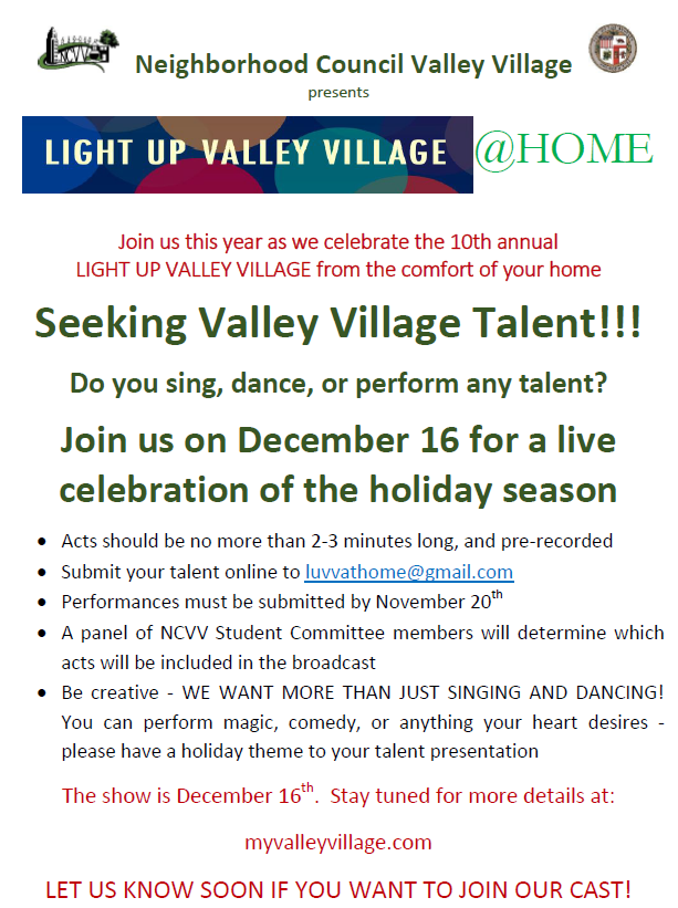 Be creative – WE WANT MORE THAN JUST SINGING AND DANCING! You can perform magic, comedy, or anything your heart desires – please have a holiday theme to your talent presentation