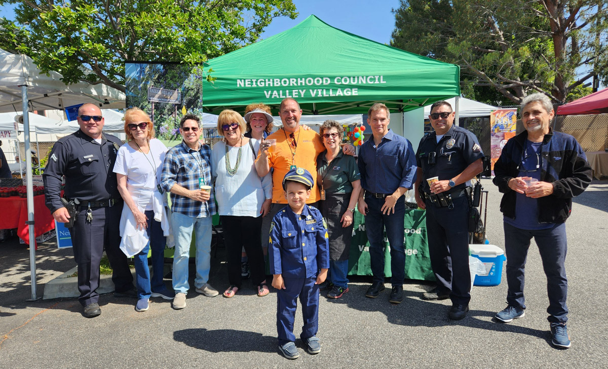 Neighborhood Council Valley Village greeted stakeholders at the Coffee with a Cop event held at Faith Presbyterian Church on May 13, 2023. The coffee event created synergies with the Farmer’s Market and we met many new families.