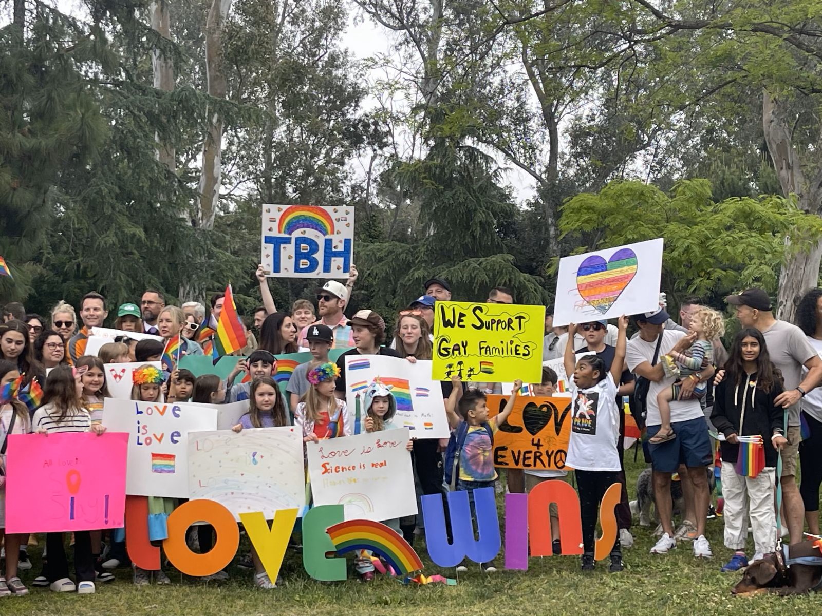 At the same time more than 100 celebrated Pride month in Valley Village with the 3rd annual Valley Village Love Is Love Pride parade. Participants met at Valley Village park, decorated signs and banners and then marched in a parade around Valley Village. Funds raised from the event benefited the Trevor Project, an organization dedicated to helping LGBTQ+ young people in crisis.