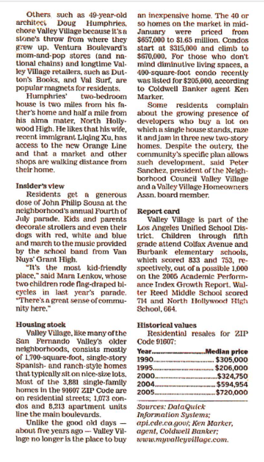 Some think that Valley Village was formed in 1991. Historically this area has been Valley Village for more than sixty years. According to the Los Angeles Times, a new community was born and articles of incorporation were granted in May 1939. Plans were laid for launching community beautification by 500 women in June 1939 at a meeting on the grounds of the King Charney Rancho on Magnolia Boulevard. At that time the plan called for a model community featuring parkways, cycling paths, a series of small parks, recreation centers and other amenities.